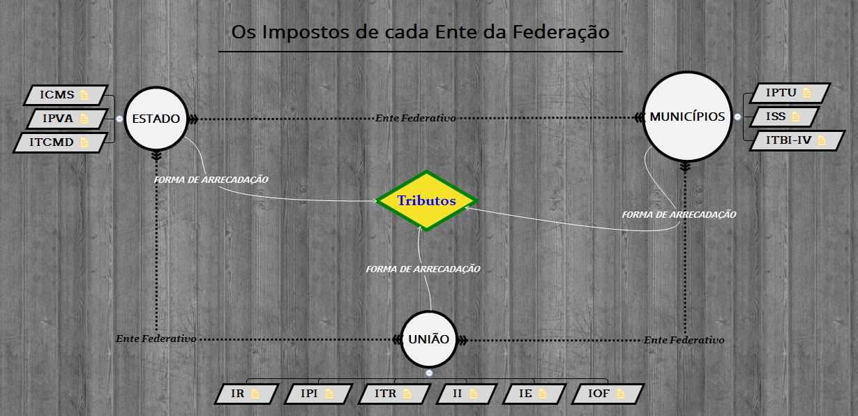 Muitos não sabem para onde vai os impostos que pagamos todos os dias. Visualize o mapa conceitual para conhecer um pouco mais sobre.